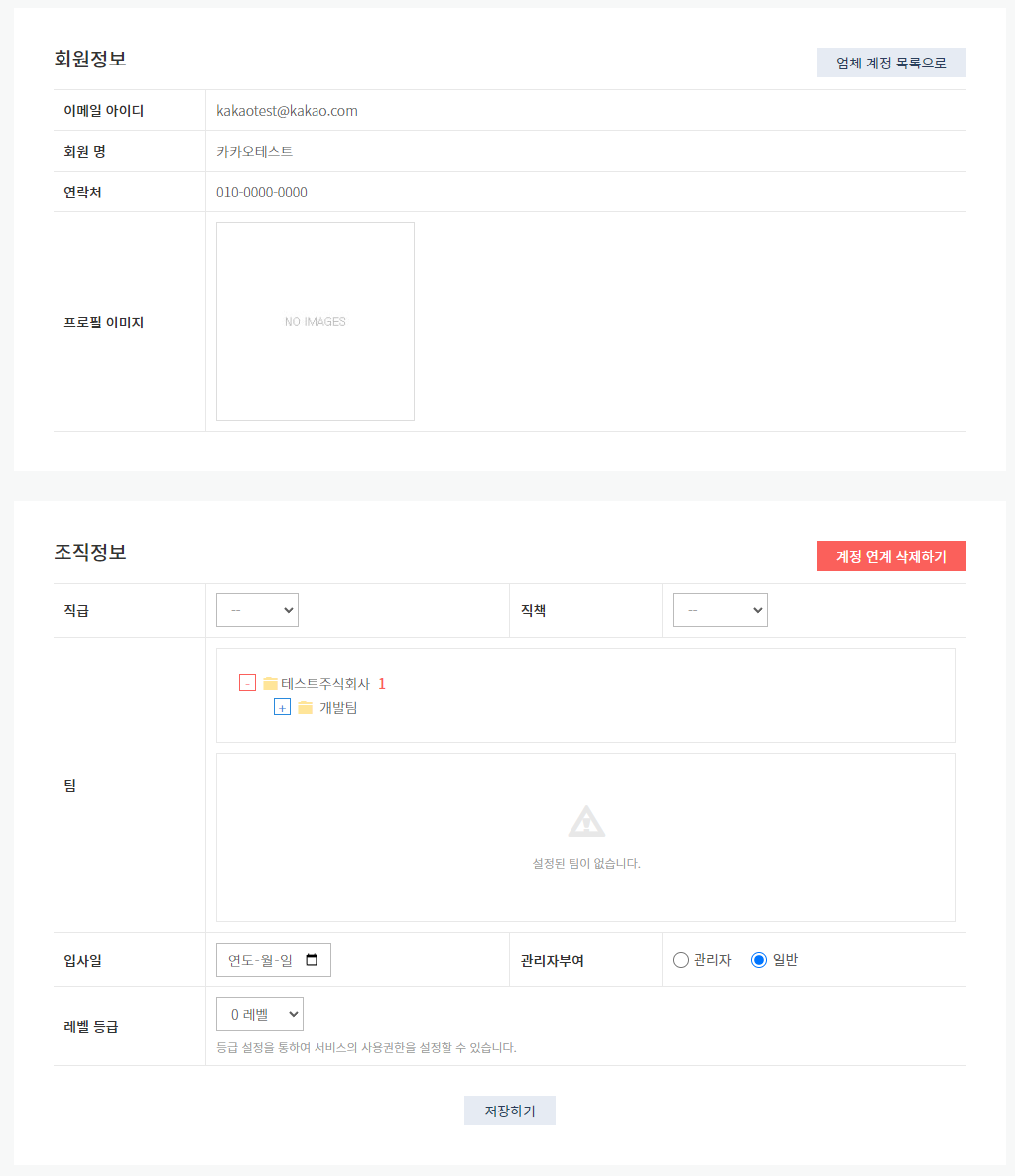 ※ 사용자 계정 자체가 아닌, 해당 업체에서의 정보만 수정
