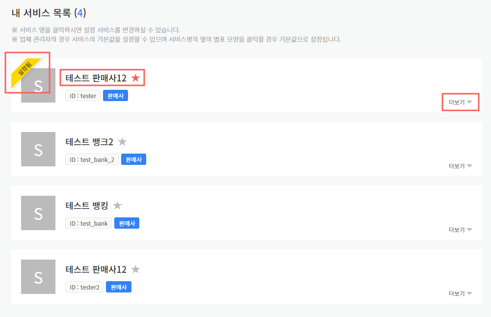 - 현재 업체에 연결된 서비스 리스트 확인 가능